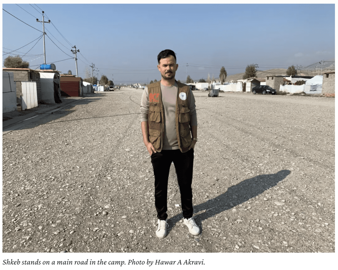 We met Shkeb while visiting the entrepreneurs participating in our jobs empowerment program in a camp for displaced people in northern Iraq. As a member of camp management, Shkeb has seen first-hand how your support has transformed the lives of displaced people. Providing business owners with small grants to get their businesses started and a year of personalized coaching to ensure the businesses thrive means people living in the camps do not have to travel hours to buy food, clothing, or school supplies. They don’t have to spend their money on costly gasoline or taxis to shop. Thanks to your investment, they now have a shopping district in their camp, where prices are often cheaper. People can walk the camp streets as they used to walk their old neighborhoods, shopping, saying hello to storekeepers and neighbors, or stopping for a quick tea–all the routine activities of a normal life.