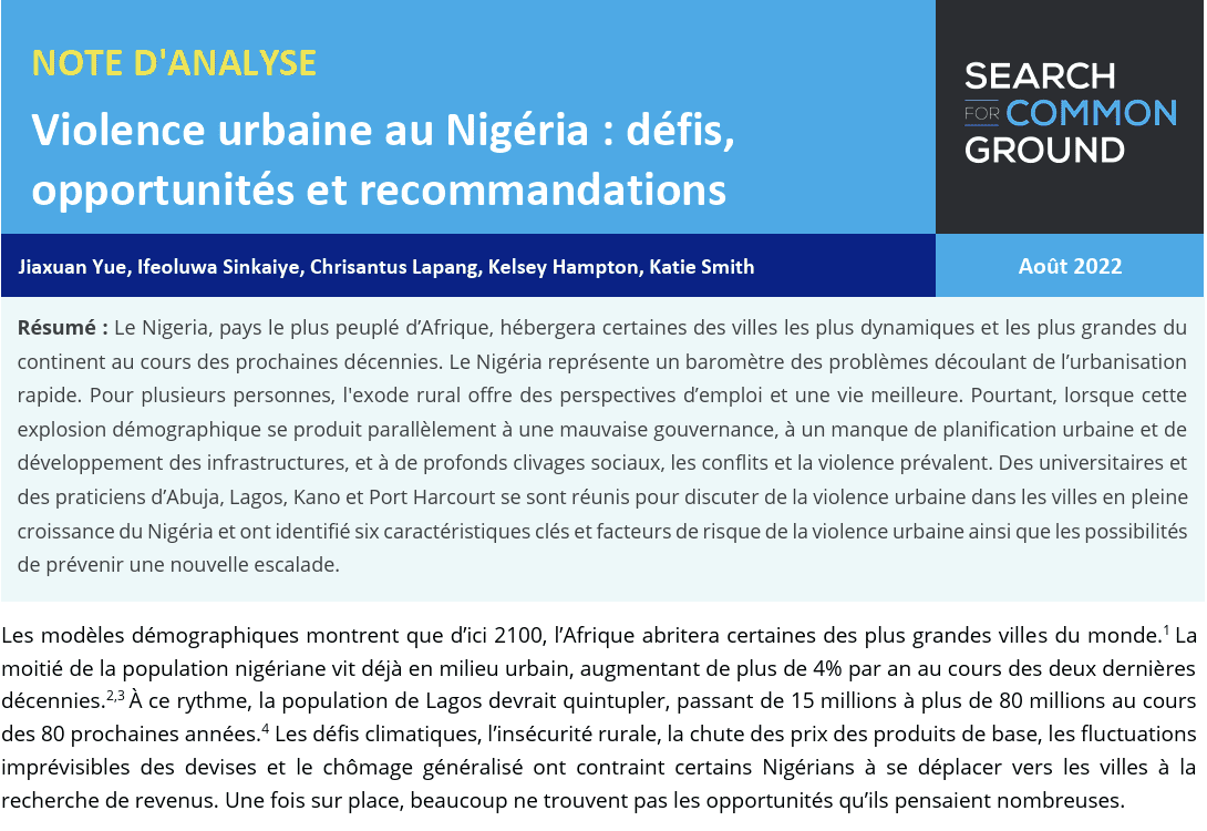 Note d’Analyse – Violence urbaine au Nigéria : défis, opportunités et recommandations